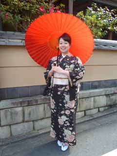 『初めて念願の着物で京都の町を歩く事ができて、と~っても楽しかったです。京都は大好きですが、更に更に好きになってしまいました。キレイにして下さり、ありがとうございました!また来ます^-^